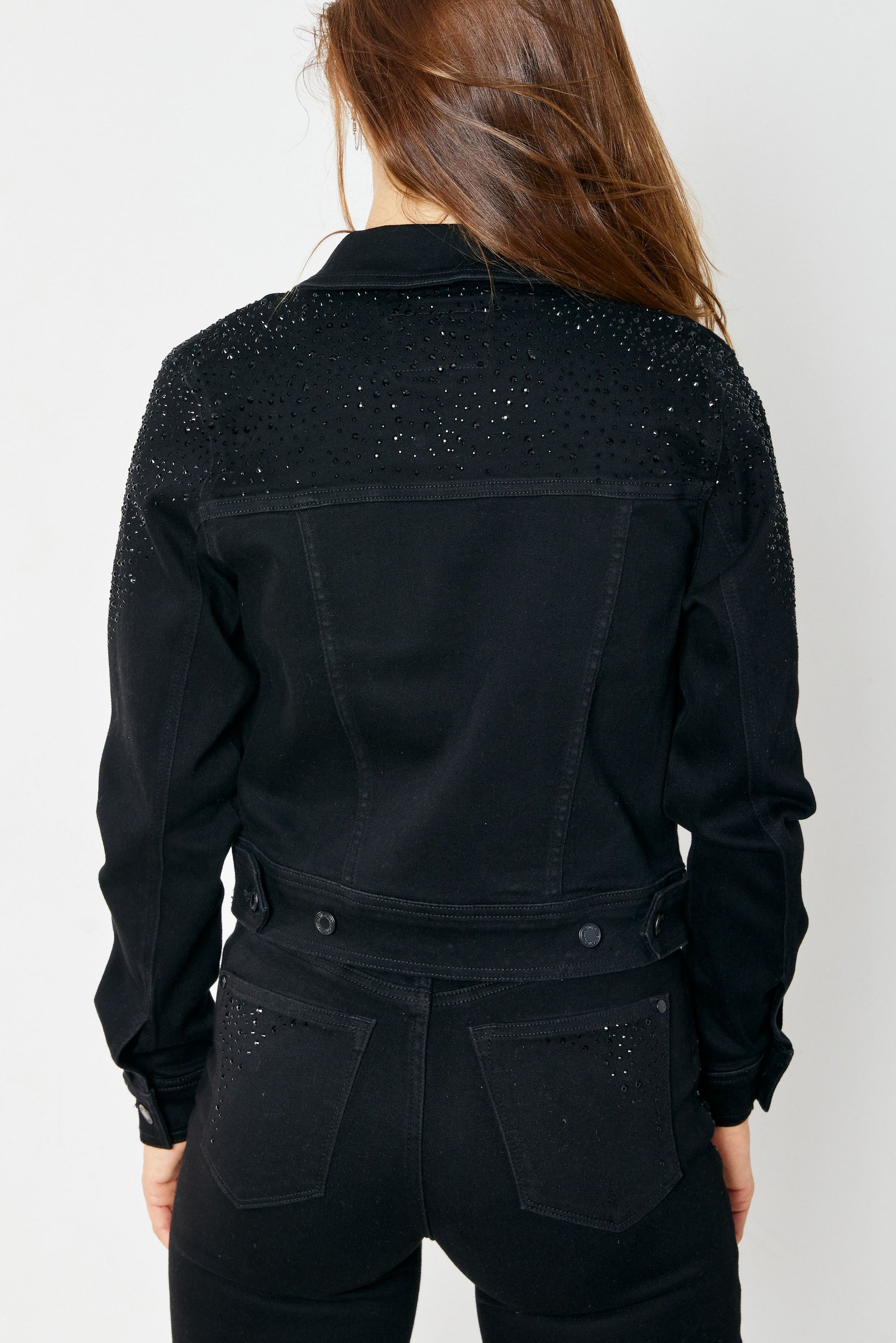 After Midnight Black Denim Sparkle Jacket | Black Rhinestone Denim Jacket