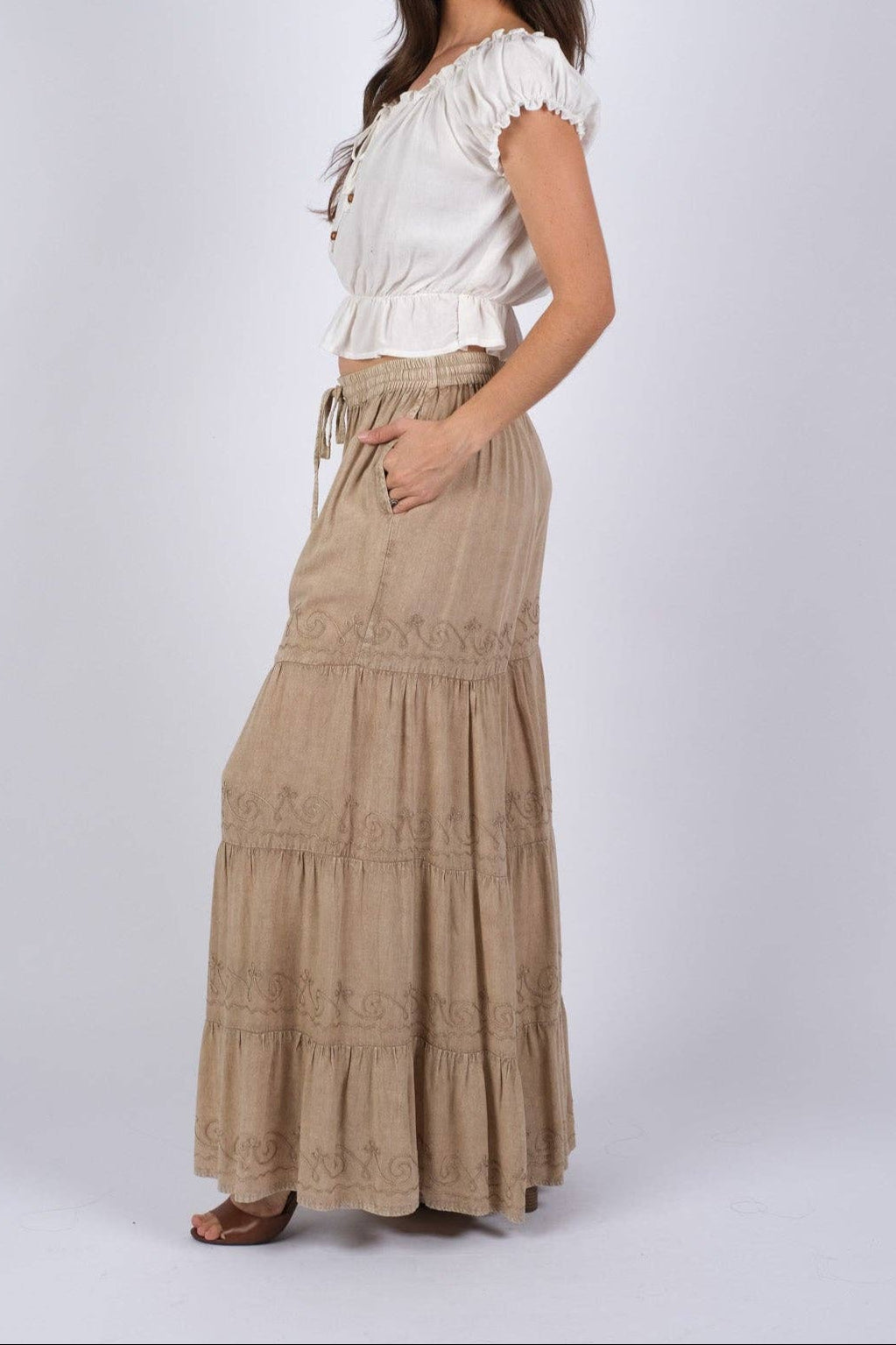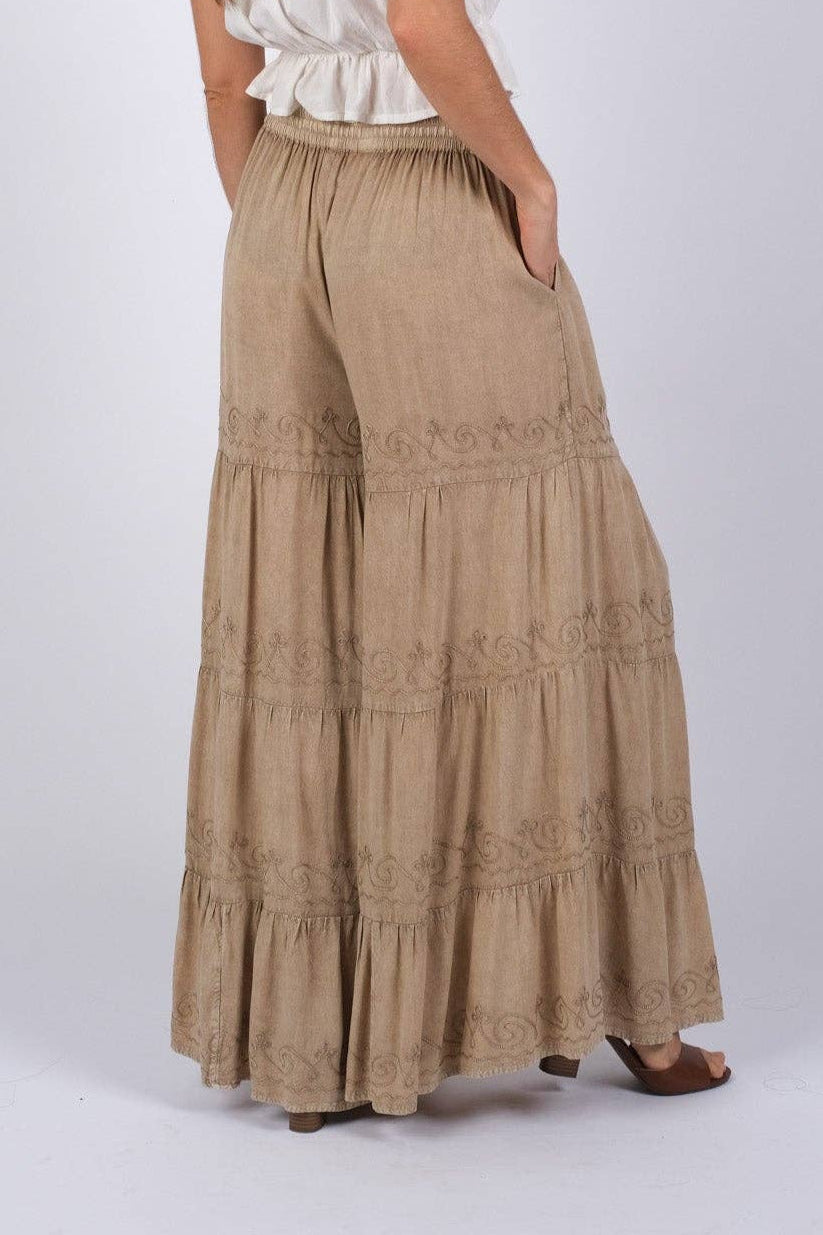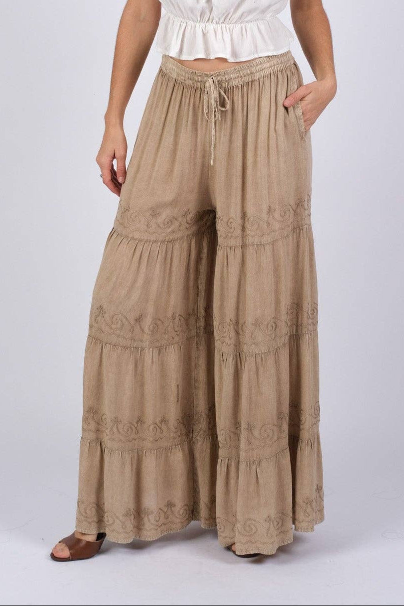 Artisan Embroidered Palazzo Pants | Embroidered Camel Tiered Palazzo Pants