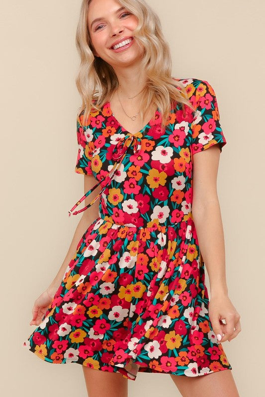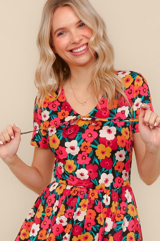 Day In the Park Floral Romper | Floral V Neck Short Sleeve Romper