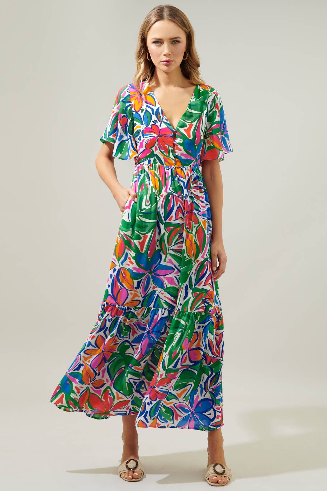 Paradise Falls Pismo Flutter Maxi Dress | Sugarlips Vibrant Floral Maxi Dress