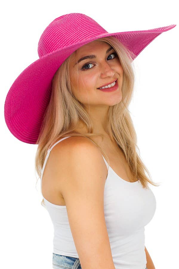 Expertly crafted tight-weave paper straw sun hat featuring a substantial heavy-weight construction and generous 6-inch wide brim. This solid-colored floppy design provides superior sun protection while maintaining sophisticated aesthetic appeal.